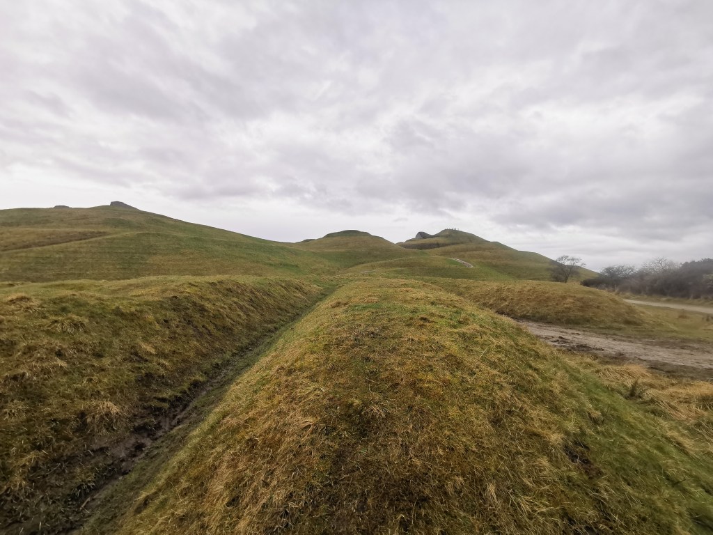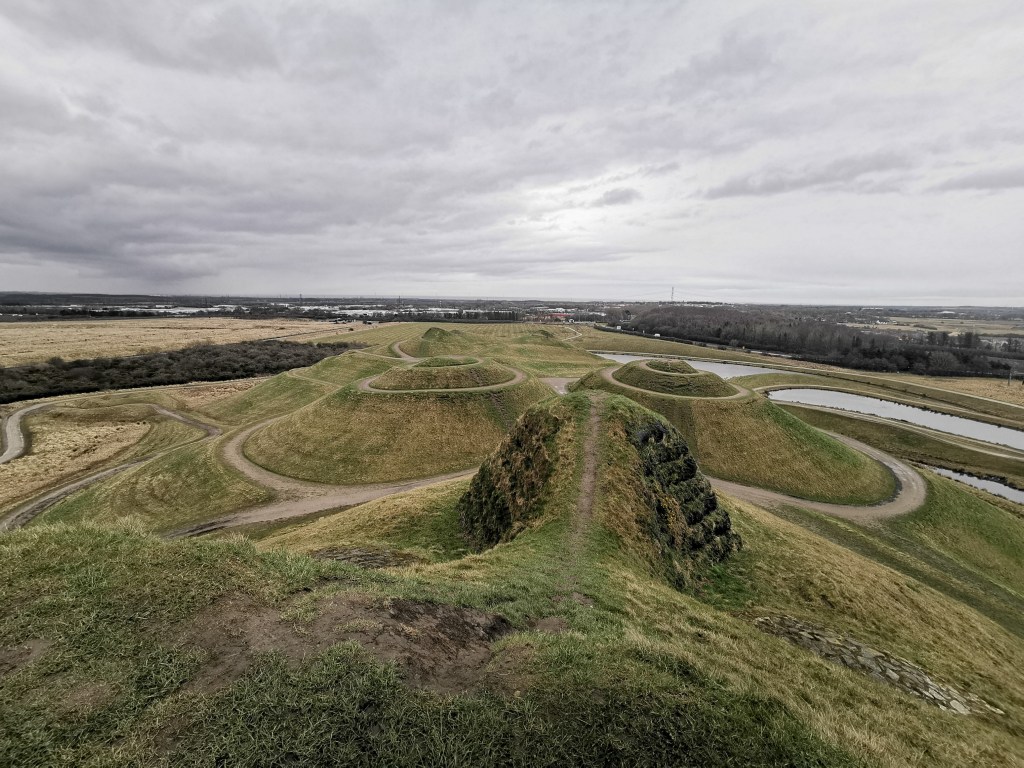 Looking down from this vantage point just above her eyes, we can ascertain a sense of the scale that this work of landscape art is built to, it’s fairly monumental. There are already signs of erosion, and an unplanned footpath up on the top of the nasal ridge, despite the monument only being open for nine years at present, this is coupled with a recently fixed erosion issue on the side of her face last summer, giving the overall impression that this structure will be more transient than the planners intended, which was for it to develop, after building in a natural manner. Though I had imagined it be the ecosystems that spring up between the woods, grassland, and ponds which would be left to develop.