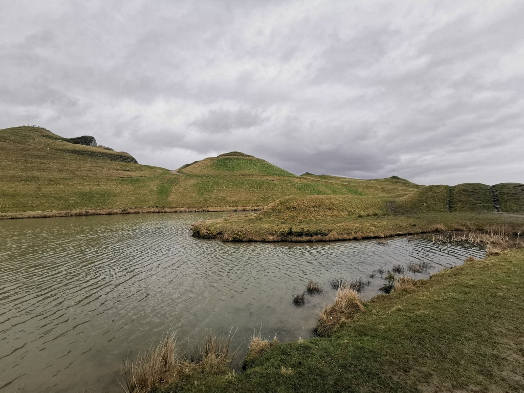 This last view highlights one of the ponds sculpted into the landscape around Northumberlandia, these ponds help enhance the sculpture by reflecting it in themselves, making almost a mirror image at times. At other times, the availability of water creates a mist in the early morning, shrouding her in an eerie fog wrapped around her base. These ponds are now a part of nature, they have fish in them, birds nesting close by and an assortment of insects associated with water. The whole experience on a sunny day is that of a park, but on a cloudy, rainy day, with the lack of shelter on the site of the artwork it feels much more like it could be out in the countryside.
