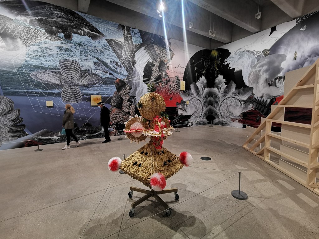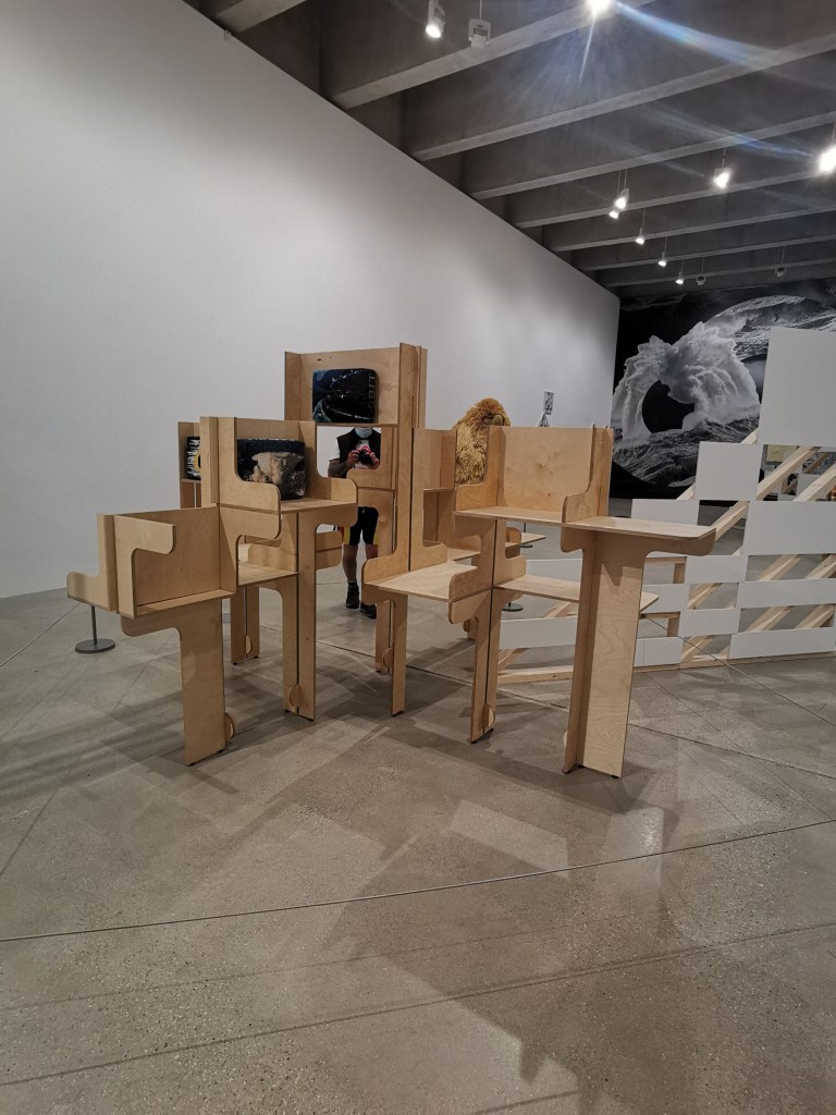 Approaching this exhibition through the Tate St Ives galleries, I wasn’t so sure as to what I should expect to encounter when I finally reached the installation space. In the room before the main installation, I didn’t realise the pieces there were connected to the main installation in the main gallery, but enjoyed them in a kind of isolation, as works in their own right. Moving through this room of what I had thought were autonomous pieces, into a much larger space containing what can only be described as a scene from someone’s dreams with some droning audio really blew my mind. It was an incredible scene which I hadn’t been prepared for, and which is only comparable to me with one other installation work which I have experienced called The Age Of Love by Heather Philipson, back in 2018, which felt like a 1990’s nightclub.