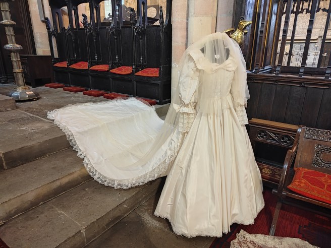 The exhibition of wedding gowns which are currently being displayed really is stunning. The dresses are positioned all around the Abbey Church, making walking around the exhibition easy and intuitive. The collection included a range of wedding dresses spanning from the early 1900s to the early 2010s which are not on display in chronological order, or even thematically, they are just displayed nicely. There is a mixture of styles on display as well as a mixture of value, some dresses are homemade, others shop-bought, the guide to the exhibition highlights that one was designed by Coco Chanel in Paris as well as replica copies of Kate Middleton and Diana Spencer’s wedding dresses displayed in amongst the other offerings.