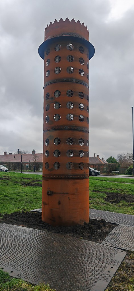 On Wednesday 20th March 2024, a new sculpture was ‘unveiled’ in the Killingworth / West Moor area of North Tyneside.  The day was a bit grey, the drizzle departing, and a small crowd of onlookers turned out to witness the event.   There were reporters, bloggers, dignitaries, and people from the local history society present among those who turned out on the afternoon.