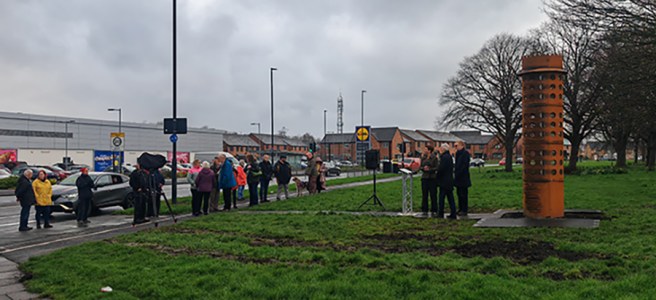 On Wednesday 20th March 2024, a new sculpture was ‘unveiled’ in the Killingworth / West Moor area of North Tyneside.  The day was a bit grey, the drizzle departing, and a small crowd of onlookers turned out to witness the event.   There were reporters, bloggers, dignitaries, and people from the local history society present among those who turned out on the afternoon.