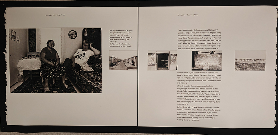 The final part of this exhibition, and the final project Raffles was involved in at the time that she passed away was Lot’s Wife. This is only a small part of the overall exhibition, showcasing Jewish women who have moved from a post-soviet Russia to Israel, to the promised homeland for their people. This project has been displayed in the manner that it was thought Raffles would have wished it displayed through examination of her copious notes.