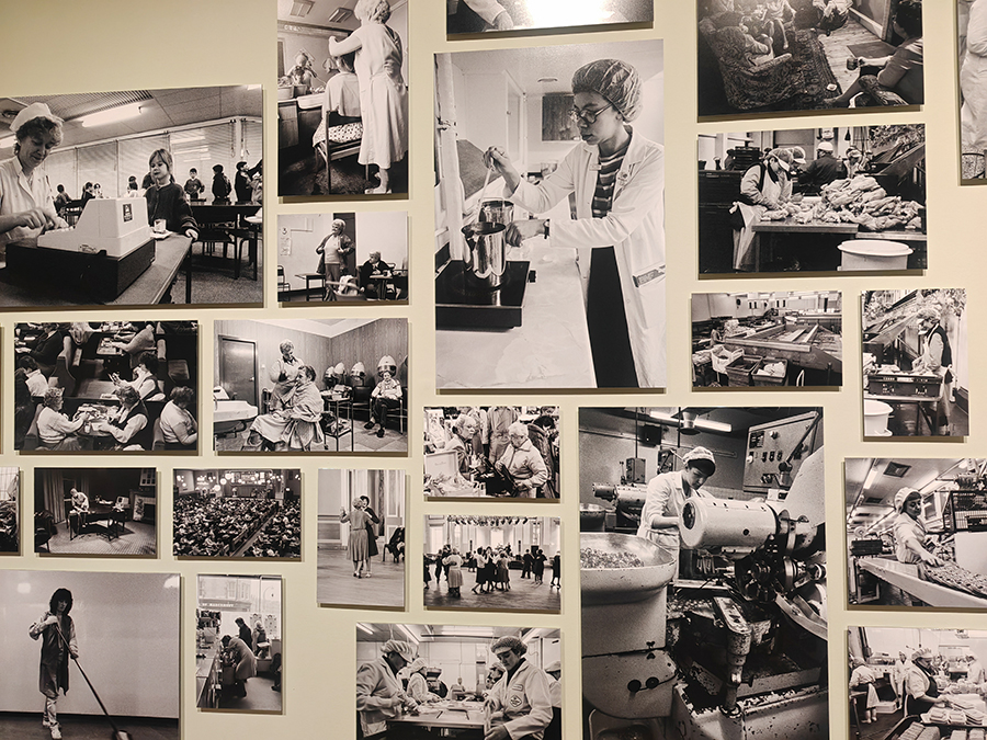 At first this lack of contextual information is a little irksome, you look up at these walls of pictures and you ask yourself, Who I she? Does she enjoy this work? Why is she doing this work? Some of the work the women pictured are doing appears incredibly laborious and difficult as well as being boring and low quality and poorly renumerated. However, there is a small board opposite each wall of photography which contains a handful of examples of photography alongside statements given by the women in the pictures which were recorded by Raffles in her notes and diaries. These bodies of work are interesting in themselves and are worthy of taking time to appreciate. Especially considering the difficulties that Raffles must have had in accessing all of these different spaces, within different organisations and within different countries, she has curated a marvellous collection of work.